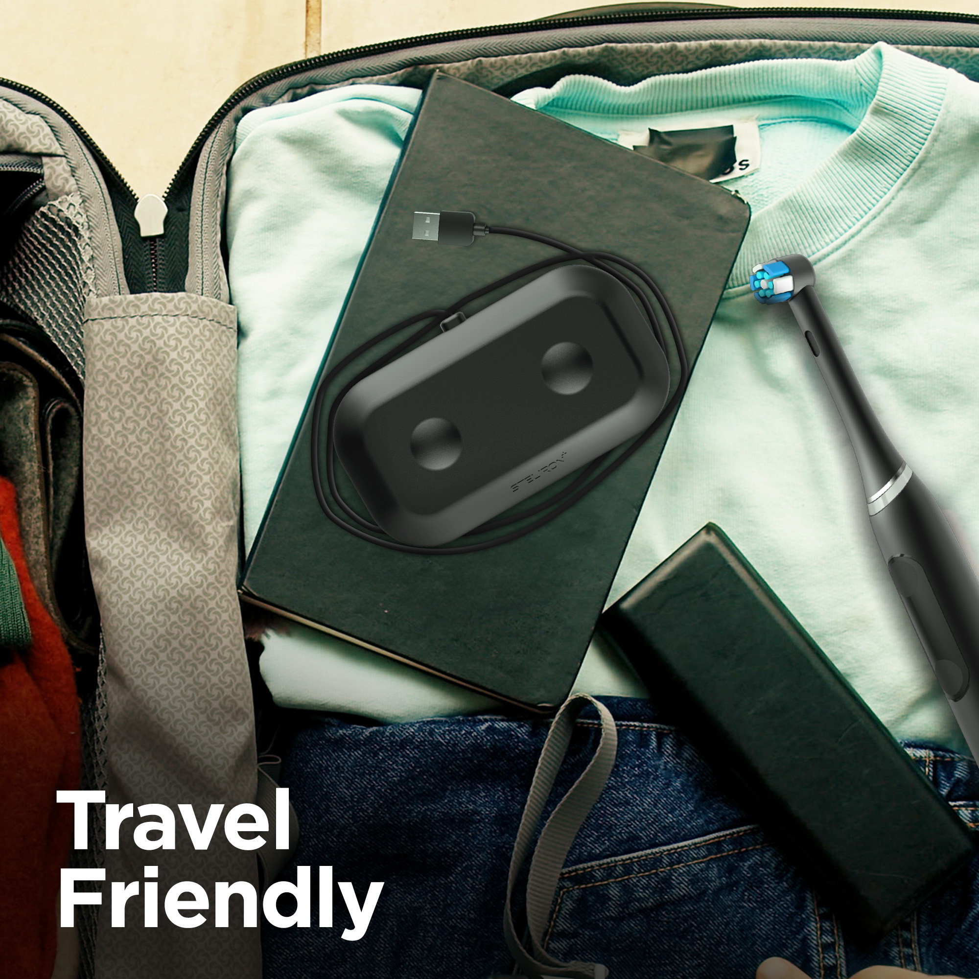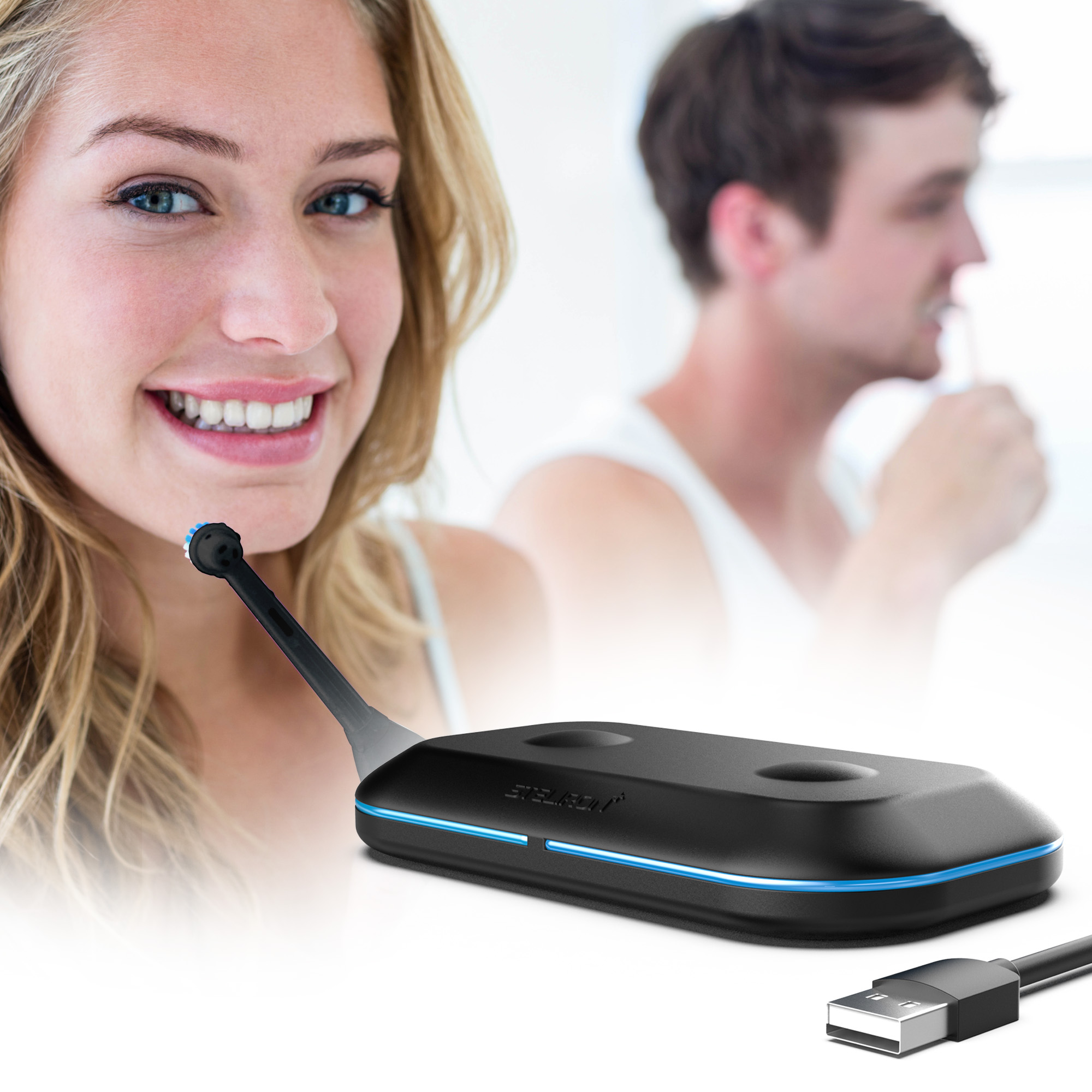 - Charge two toothbrushes at full speed with one charger, eliminating unnecessary countertop wires and clutter.